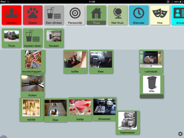 Ik heb het boek nog niet uit, ik weet niet of het antwoord erin staat, eerlijk gezegd denk ik het niet. Naast dat het boek zeer interessant en lezenswaardig is, geeft het ook aan dat de logopedie (breder gesteld de taal en hersenwetenschap) eigenlijk nog maar een jonge wetenschap is. Goed, terug naar de in vergelijking met dit boek, mijn triviale opdracht. Ik ben maar eens begonnen met wat er in mijn optiek in de keuken zou moeten gebeuren, of dat de juiste insteek is zal moeten blijken, maar ja je moet toch ergens beginnen. Vanuit het pictogram, keuken doen zie je boodschappen >koken >wijntje >eten >toetje >afwassen >vaatwasser. Separaat wordt nog aangegeven, koffie en thee, vuilnisbak> kliko. Rest mij nu de andere vertrekken en het buitengebeuren in kaart te brengen. Goed observeren zal nodig zijn, Thea heeft daarbij de (denkbeeldige) afstandsbediening en ik acteer in het verlengde daarvan. Ik heb een rijke fantasie, maar dat de rolverdeling in de loop der tijd zo kan wijzigen valt buiten de scope van mijn fantasie. Wordt vervolgd.